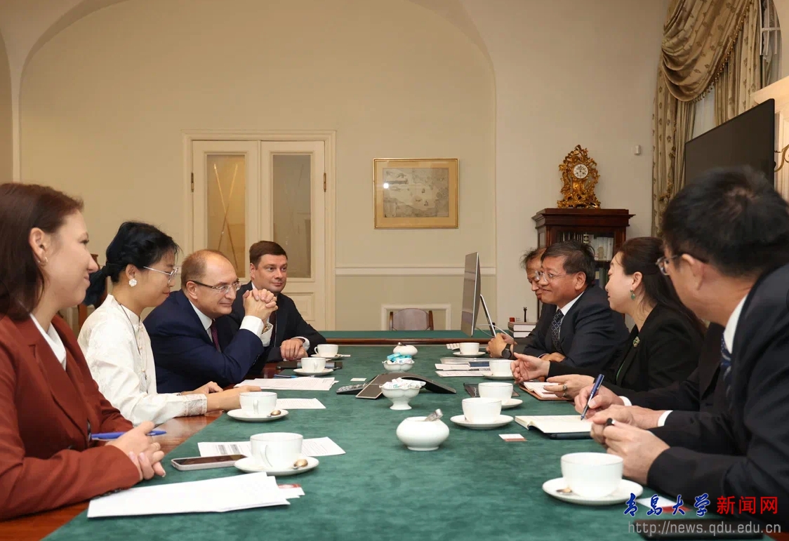 在圣彼得堡,代表团首先访问了圣彼得堡国立大学,受到了校长尼古拉·克罗帕乔夫的热情接待。双方同意在前期合作基础上,推进七方面合作:一是推进“数字经济中的数学方法与人工智能方法”硕士双学位联合培养项目和博士培养项目;二是探索开展“经济学+人工智能”交叉学科人才联合培养;三是依托两校医学院(中心)和附属医院,开展医生的交流互访和旅游医疗,推动医疗合作;四是推动两校互设办事处;五是联合开发在线课程并上线学堂在线平台;六是面向上合重大需求,通过博弈论、人工智能等技术手段开展学科交叉创新合作研究;七是探讨合作成立联合学院等办学机构。