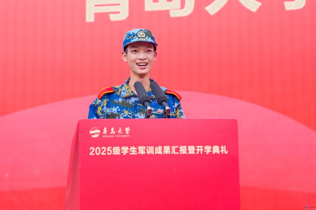 教师代表电气工程学院张智晟教授勉励新生要学在青大,志在天下,胸藏万卷,肩负山河,既能脚踏实地丈量学术的深度,更能仰望星空拓展生命的广度。希望大家要以自律为尺,筑牢生活的基石;以创新为翼,突破认知的边界;以利他为光,拓展生命的格局;以报国为志,锚定人生的坐标。