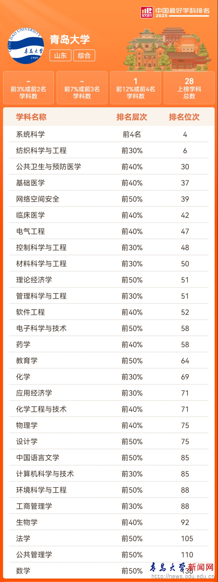 新闻网讯 10月15日,高等教育评价专业机构软科正式发布“2025软科中国最好学科排名”,金年金共有28个学科上榜,上榜学科数位列全国高校第53位,省属高校首位,在非“双一流”高校中位列全国第4位。其中系统科学连续2年位列全国第4位,入选“中国一流学科”;纺织科学与工程连续4年位列全国第6位;电气工程、中国语言文学、公共管理学等3个学科新增上榜。