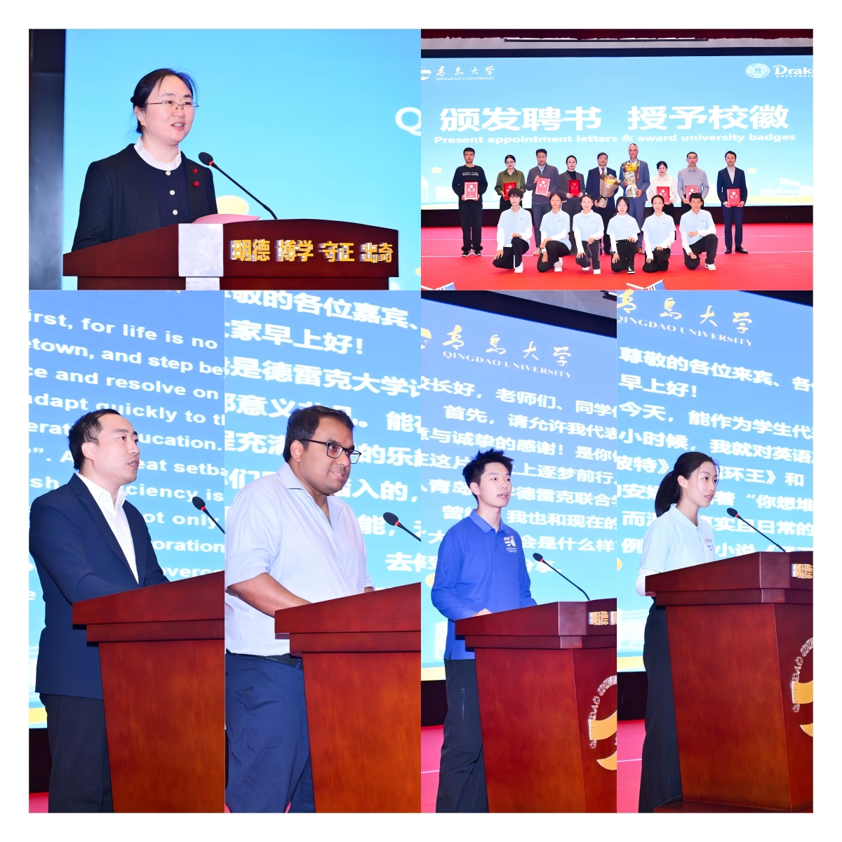 魏志强和马蒂·马丁共同为学院新一届班主任颁发聘书,并为学生代表授予两校校徽。金年金字招牌诚信至上教师代表李尚勇、德雷克大学教师代表阿里穆尔·雷兹、2024级学生代表陈建宇和2025级新生代表秦静愉先后进行发言。