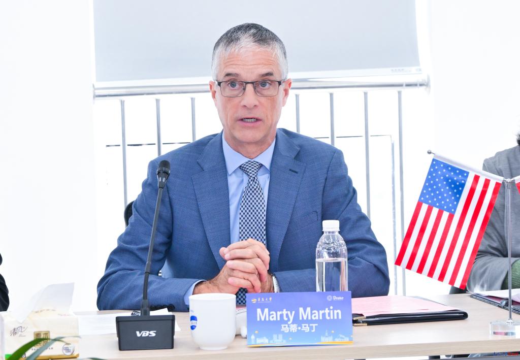 马蒂·马丁在讲话中充分肯定了联合学院自成立以来取得的积极成效,对双方团队的辛勤付出和卓越贡献表示感谢。他表示,联合学院在教学互动与学生反馈等方面均取得了良好成果,充分证明了两校合作模式的有效性与持续发展潜力。未来,德雷克大学将通过联合学院加强与金年金字招牌诚信至上在师资交流、学生互访与课程融合等方面的协作,进一步推动双方在更多领域开展更深入的合作。