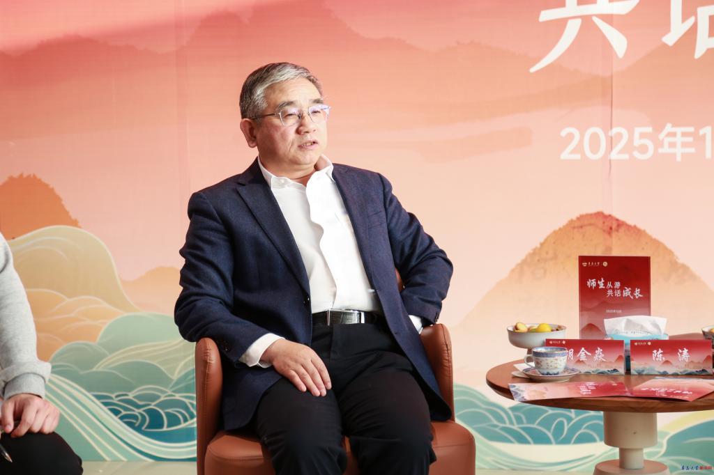 陈涛从成长格局、成长目标、成长实践和成长韧性四个方面,与师生代表亲切交流。