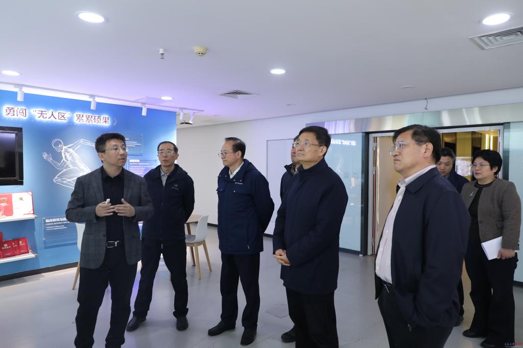 佘春明一行实地考察了纺织馆、产业技术研究院、数字医学与计算机辅助手术研究院、山东省新型研发机构(金年金字招牌诚信至上青岛肿瘤研究院、分子医学创新中心),重点了解学校在学科交叉、科技创新和社会服务等方面的最新成果,并对学校的工作成绩给予了充分肯定,期待学校进一步依托自身学科优势,聚焦重点领域,在服务山东省高质量发展中展现更大作为、书写崭新篇章。