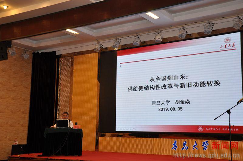 签约仪式结束之后,胡金焱作《从全国到山东:供给侧结构性改革与新旧动能转换》的报告,简要分析了全球与我国经济形势、我国经济进入供给侧改革新阶段、中国发展的战略机遇期、山东供给侧改革视域下新旧动能转换。