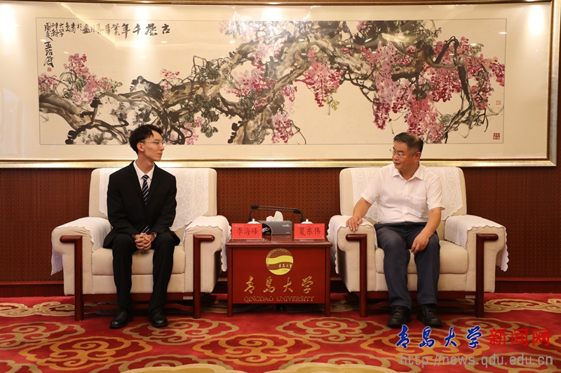 新闻网讯 8月21日下午,校长夏东伟在办公楼204接待室接见金年金参加全国学联第二十七次代表大会代表李海峰同学,并同他亲切会谈。