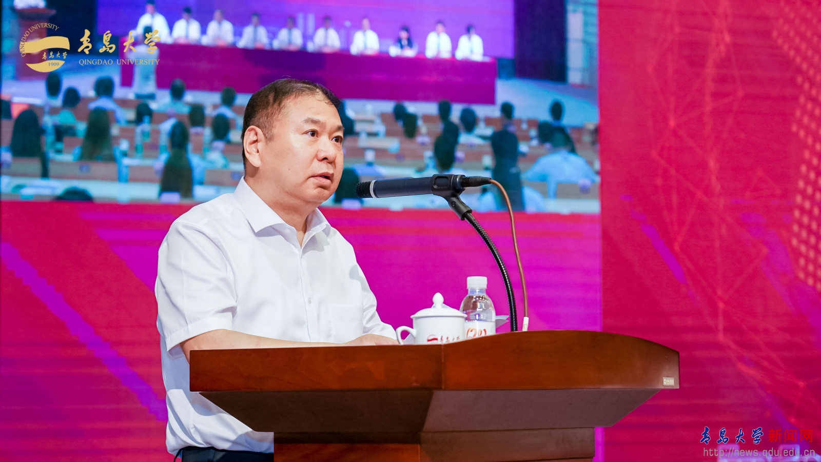 研究生导师代表于海生教授发言,他表达了对同学们的殷切期盼,希望他们潜心学术,探索新知;视野宽广,担当重任;读万卷书,行万里路;敢于竞争,善于合作。