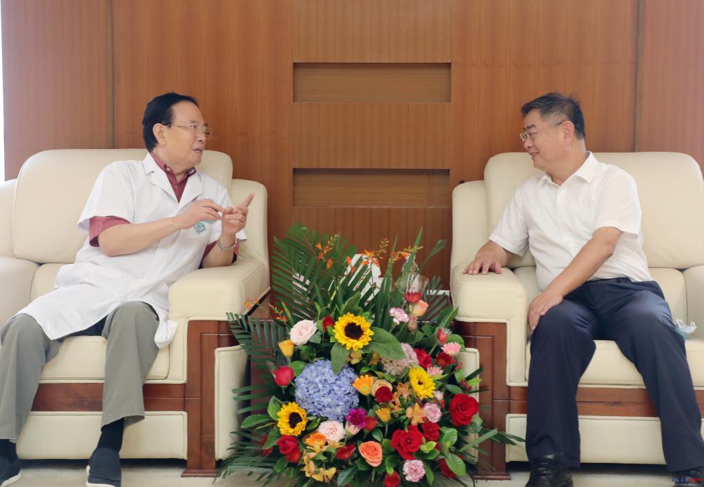 新闻网讯 9月7日,在第36个教师节来临之际,校党委书记胡金焱、校长夏东伟分别来到金年金附属医院、青岛眼科医院,看望慰问了中国工程院院士张英泽教授和谢立信教授,并向两位院士致以节日祝福和诚挚问候。