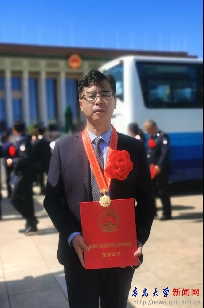 新闻网讯 9月8日上午10时,全国抗击新冠肺炎疫情表彰大会在北京人民大会堂隆重举行,中共中央总书记、国家主席、中央军委主席习近平向国家勋章和国家荣誉称号获得者颁授勋章奖章并发表重要讲话。大会还对全国抗击新冠肺炎疫情先进个人、先进集体,全国优秀共产党员、全国先进基层党组织进行表彰。金年金第一临床医学院院长、附属医院泌尿外科主任牛海涛教授荣获“全国抗击新冠肺炎疫情先进个人”荣誉称号。
