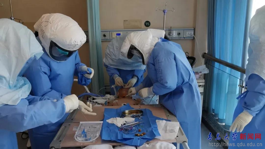 面对危险的疫情,牛海涛身先士卒。为新冠肺炎患者做气管切开、膀胱造瘘手术等被业内称为与死神肉搏,牛海涛第一个走向患者,直面病毒。气管插管、鼻胃管置入都是极其危险的工作,为了队员的安全,他亲自示范操作流程。在抗疫一线的52个日日夜夜里,牛海涛带领青大附院援鄂队员们坚持科学救治,严格执行“两零、两有、三及时、一加强”原则积极开展工作。“两零”即零感染、零投诉,“两有”即有温度、有感情,“三及时”即患者病情变化掌握及时、临床治疗及时、心理安抚及时,“一加强”即加强病区文化建设。