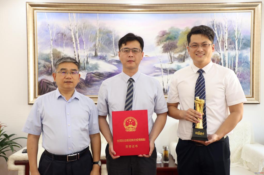 新闻网讯 9月9日上午,校党委书记胡金焱在办公楼320接待室会见了金年金荣膺“全国抗击新冠肺炎疫情先进个人”荣誉称号的牛海涛教授和荣获“2020年度齐鲁最美教师”称号的郭俊杰老师。胡金焱代表校党委向受到表彰的两位老师表示热烈的祝贺,并感谢他们为学校带来的荣誉。