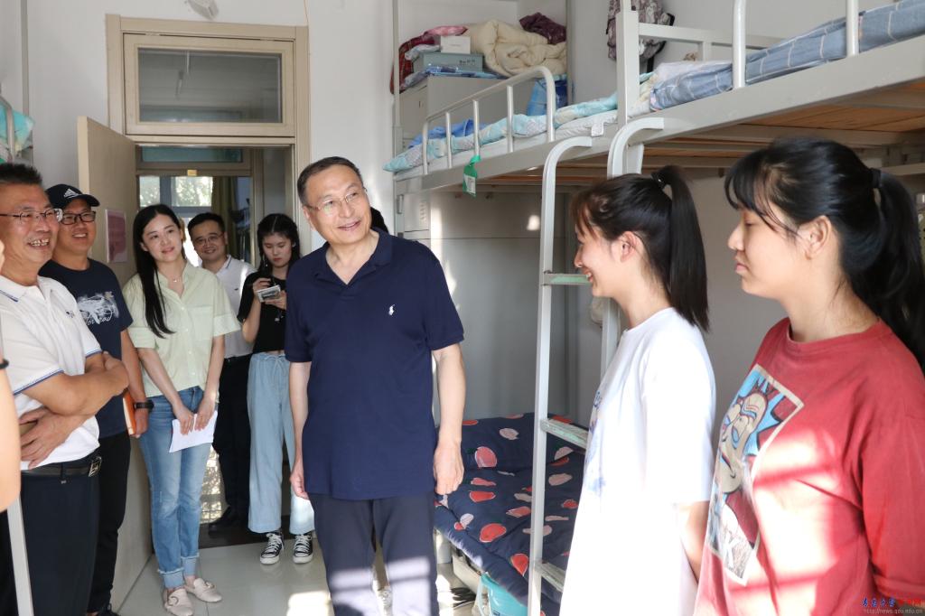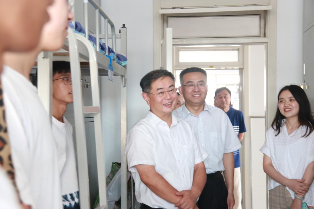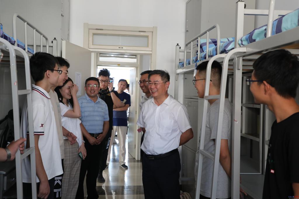 校长夏东伟来到浩园学生宿舍看望了医学部和计算机科学技术学院2020级新生,向学院负责人仔细了解学生的住宿情况,亲切询问了学生们的专业选择和来校报到后的感受,向同学们介绍了学校的专业优势,勉励同学们要珍惜大学时光,努力学习,学有所成。