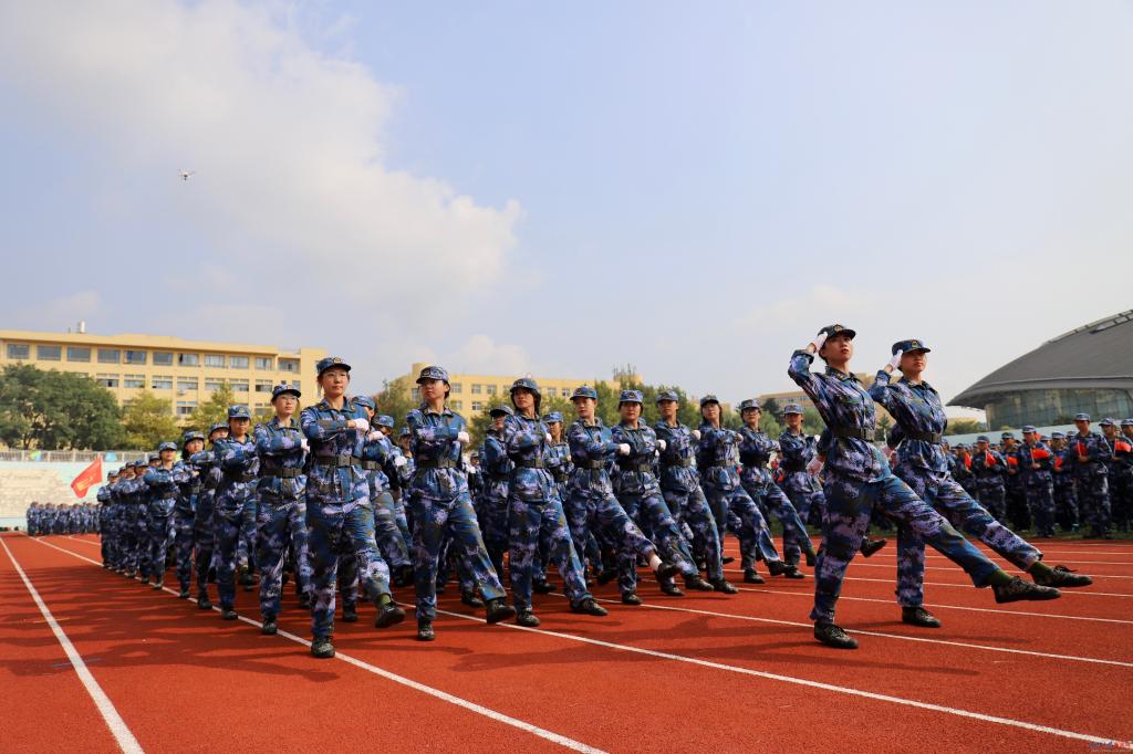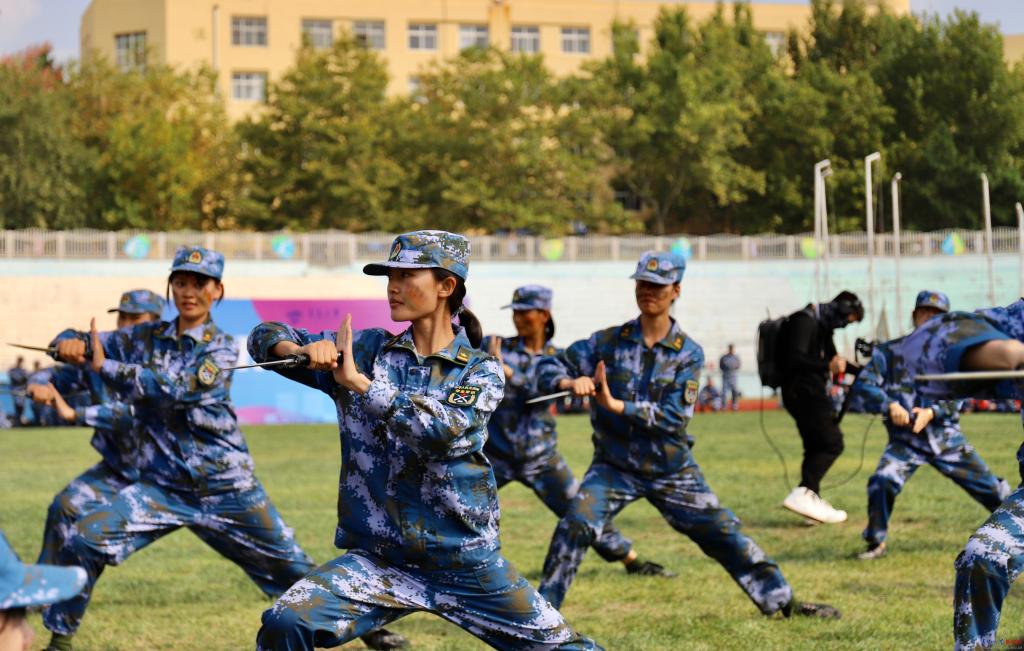 愿以寸心寄华夏,且将岁月赠山河。2020级学生军训成果汇报在嘹亮的分列式进行曲中,由新生组成的25个军训方队迈着整齐而坚定的步伐走过主席台,他们军容整肃、口号嘹亮,彰显了新生自强不息、立志报国的壮志豪情;内务整理及紧急集合、女子匕首格斗术、擒敌拳、战术和战地救护等训练课目的演示,精彩地体现了军训塑造的良好风貌,赢得了现场观众的阵阵掌声。