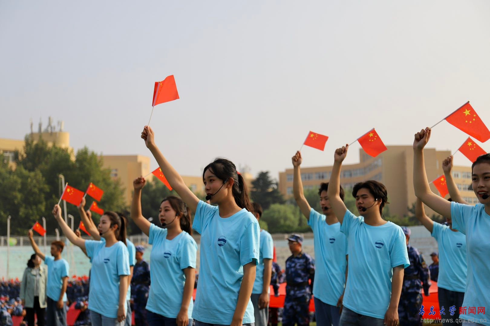全场师生挥动着手中的国旗,7000余名新生齐声合唱,表达对祖国深沉的爱,为伟大祖国喝彩,为中华民族歌唱。随后,全体新生在一片庄严肃穆的氛围中进行了中华人民共和国公民宣誓。这是来自青大学子的铿锵告白,表达爱国爱校的浓烈情感,洋溢着对美好未来的无限向往和坚定信心。