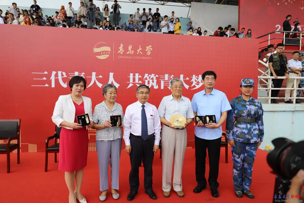 三代青大人,共筑青大梦。校党委书记胡金焱向新生发言代表吴宜臻一家赠送荣誉牌,表示正因为像吴宜臻一家为代表的一代代青大人的坚守与奋斗,赓续青大基因,学校才能薪火相传、奋勇向前。“长大后我就成了你!我和爷爷奶奶、爸爸妈妈都是校友!”六十载光阴,吴宜臻一家都与青大结缘,爷爷吴新彦作为原青岛医学院首届毕业生、青岛市放射学科资深专家和专业带头人,为我国医学事业的发展做出了突出贡献。吴新彦希望2020级同学们热爱祖国,热爱中国共产党,热爱学校,热爱专业,努力奋斗,勤学苦练,为祖国共产主义事业作出更大更多贡献。