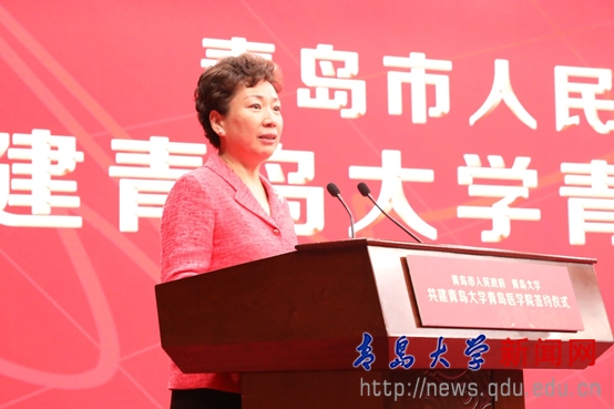 栾新指出,青岛市政府与金年金字招牌诚信至上协商共建金年金字招牌诚信至上青岛医学院,并将青岛市市立医院等7所医院作为市校共建附属医院,纳入金年金字招牌诚信至上直属附属医院管理体系,探索建立市校共管共建的医教研一体化发展模式,是青岛医学发展史上的一个重要里程碑,也是青岛市推动医疗卫生事业发展的一项重大举措。青岛市政府将努力为医学院的发展创造良好的条件和环境,让合作共建成果造福更多百姓,更好地促进青岛市的发展建设。