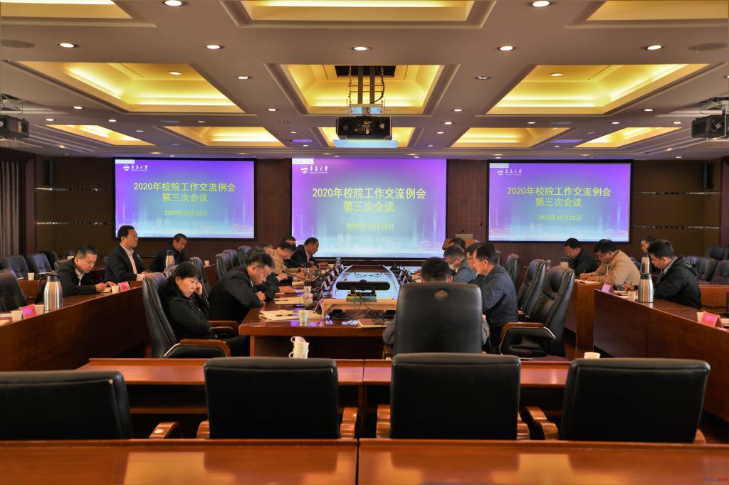 新闻网讯 10月22日上午,学校在办公楼第一会议室召开2020年校院工作交流例会第三次会议,主题是主动服务山东新旧动能转换重大工程和青岛“十五攻势”,更好发挥金年金的人才和技术优势,提升服务社会的能力。校党委书记胡金焱现场点评并总结讲话。会议由校长夏东伟主持。校领导杜方波、李军、于永明、范玉斌、刘彩云、肖江南、于红波、吴世珍、徐龙飞出席会议。
