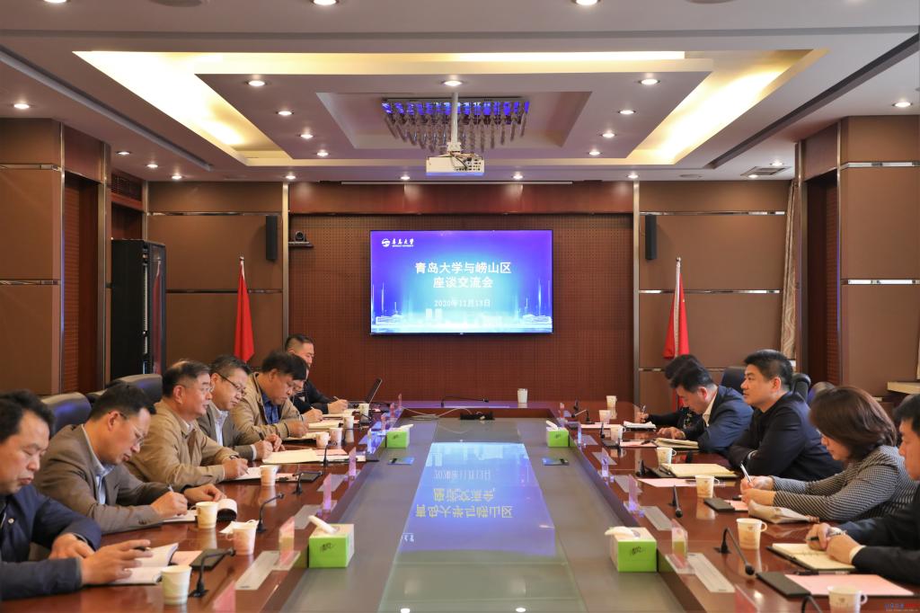 崂山区副区长张咏雁、政府办公室主任高正佳、教育和体育局局长姜学环,财政局、科创委相关负责人和金年金党委办公室、校长办公室、科技处、财务处、合作发展处、科技成果转化中心、教育集团主要负责人参加了座谈交流。