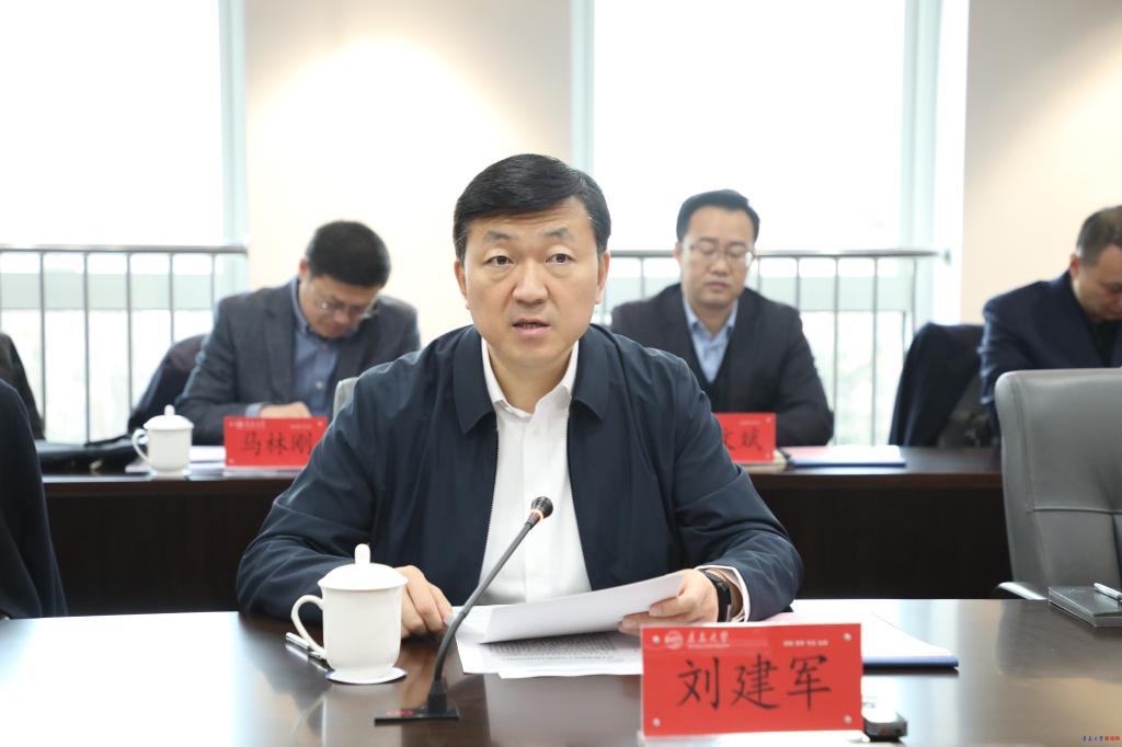 刘建军传达了省委书记刘家义12月4日省委常委会议上对建设上合经贸学院的指示精神,孟庆胜介绍了上合经贸学院前期推进情况。胡金焱代表学校,对上合示范区管委在上合校区和上合经贸学院筹建中给予的支持与帮助表示感谢。他介绍了上合经贸学院专班工作机制,并交流了上合经贸学院的筹建思路,他指出,上合经贸学院应坚持平台思维和开放思维,主动对接国家部委、主动对接上合国家、主动对接国内高校和科研院所,聚合各方面资源,把上合经贸学院打造成一个开放的、合作共享共赢的多层次人才培养基地、国际科学研究重镇和决策咨询中心。