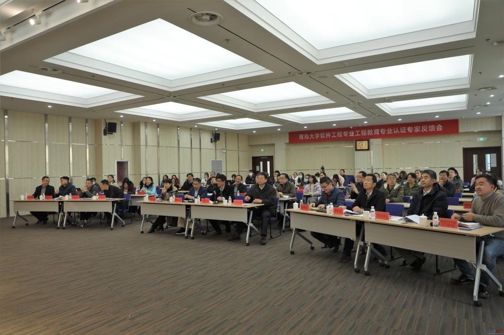 16日上午,软件工程专业认证专家反馈会在学校研发大楼会议中心多功能厅召开,专家组全体成员及学校领导胡金焱、于永明、刘彩云、于红波出席会议。