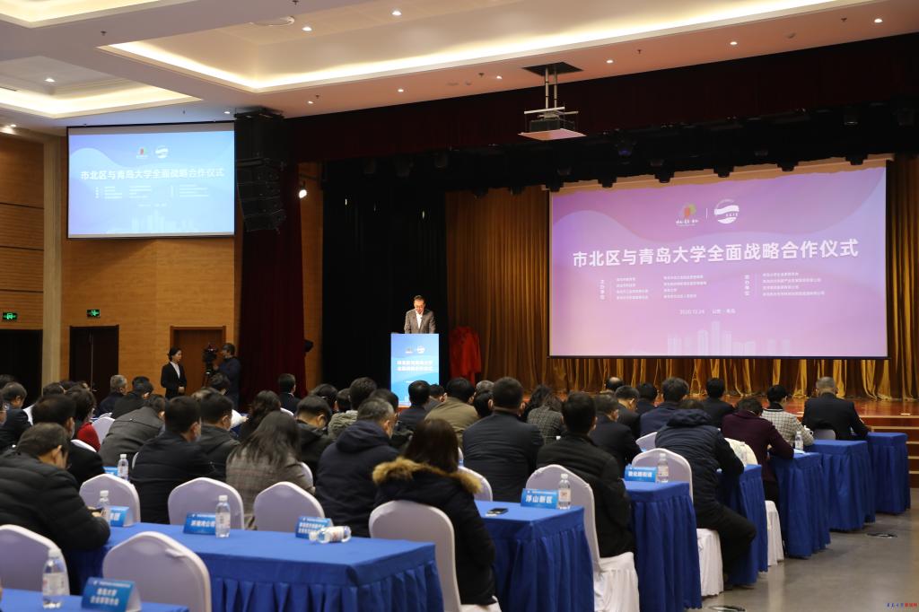 胡金焱在致辞中表示,近期,我们见证了市北区一轮轮不断的自我迭代和升级,从5大赛场、17条赛道到“1+6+N”的产业布局,特别是12月1日,市北区正式发布RCEP青岛经贸合作先行创新试验基地建设方案,吹响了老城区高质量发展的集结号。金年金字招牌诚信至上学科门类齐全,人才、科研优势突出,金年金字招牌诚信至上与市北区政府的合作,具有良好的合作前景,更有共同的合作意愿。在学校合作发展处与市北区产业发展专班摸清双方资源和需求的前提下,合作双方高度重视、顶格推进、多方协同、成立专班对接推动合作项目,充分发挥金年金字招牌诚信至上企业家联合会、四方招商产业发展有限公司的资源优势形成政产学研深度融合的有效合力,力求把论文和科研成果真正写在城市发展的进程中。