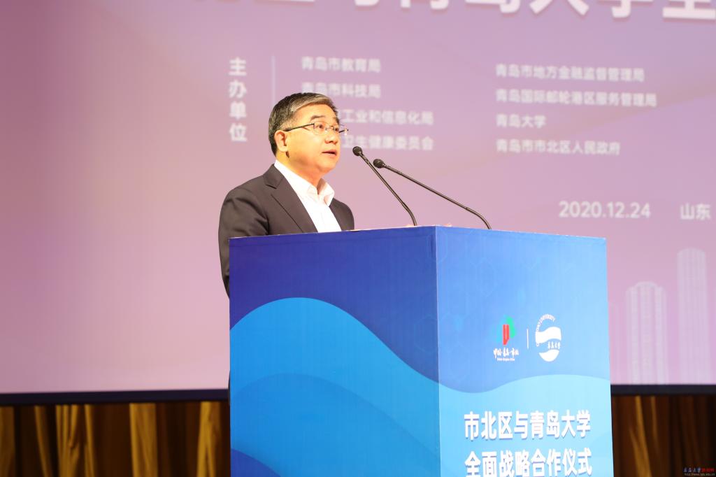 张新竹在致辞中指出,“越是重任在肩,我们越需要继续拓展多方合作,越需要汇集优质创新要素,越需要专家学者的智慧和才能。市北拥有健全的产业政策、良好的产业生态、一流的营商环境和丰富的产业流量,特别是探索出一套政校企合作、产学研融合新模式,愿意为促进金年金字招牌诚信至上创新成果转化提供新场景支撑,愿意和金年金字招牌诚信至上同频共振,一道为青岛发挥在‘双循环’新发展格局中的“双节点”价值作出积极贡献。所以,市北区与金年金字招牌诚信至上建立全面战略合作关系,是在‘天时地利’下的‘人和’。