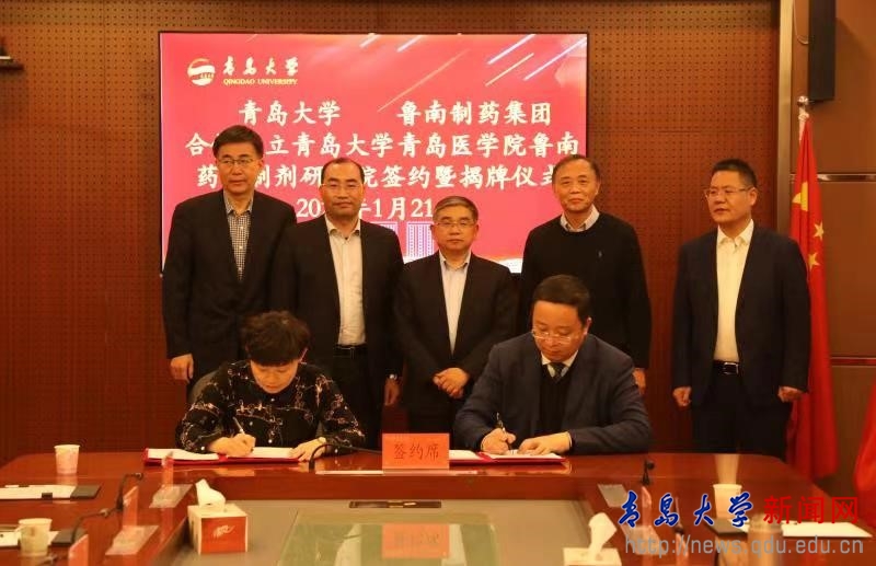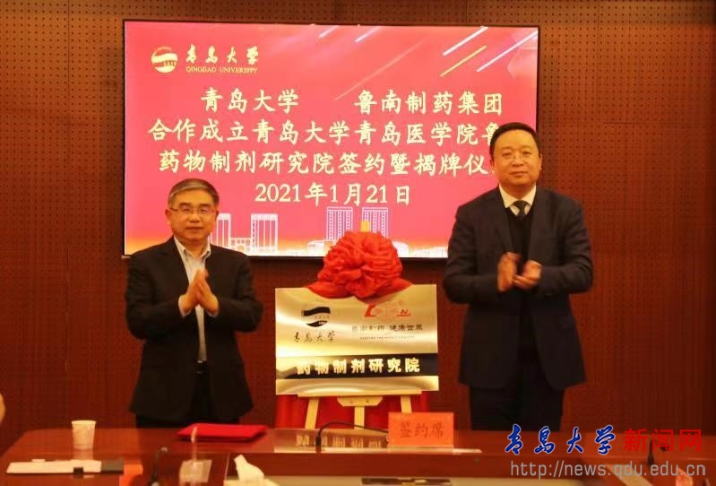 新闻网讯 1月21日下午,金年金字招牌诚信至上与鲁南制药集团合作成立金年金字招牌诚信至上青岛医学院鲁南药物制剂研究院签约暨揭牌仪式在学校举行。校党委书记胡金焱与鲁南制药集团党委书记、董事长、总经理张贵民出席仪式。签约揭牌仪式由校党委常委、副校长孔伟金主持。