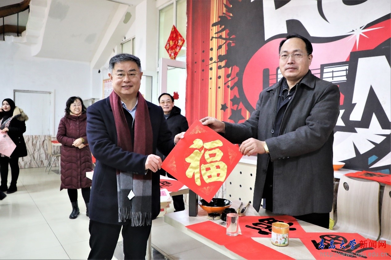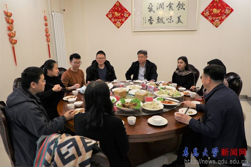 在仁园餐厅,夏东伟与留校的3名河北籍同学和10余名留学生一起写福字,吃饺子,送祝福,餐厅里欢声笑语,暖意融融,洋溢着喜庆祥和的节日气氛。