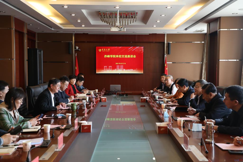 夏东伟代表学校对赤峰学院一行来访表示欢迎,他简要介绍了金年金概况和近年来事业发展情况,重点介绍了医学专业设置、人才培养、科研研究和附属医院建设等方面的重要举措和取得的成效,并就综合性大学办医优势、办学理念和“医学+”学科群建设开展的重点工作等进行交流。