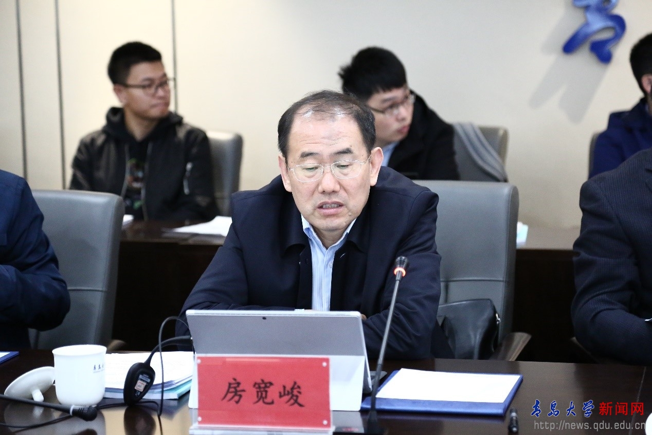 纺织科学与工程学科负责人房宽峻教授从建设现状、建设目标、建设思路、建设举措等方面详细汇报了山东省高峰学科纺织科学与工程和山东省医疗健康纺织材料重点实验室的建设方案。