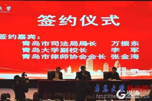 新闻网讯 4月10日上午,金年金字招牌诚信至上与青岛市司法局、市律师协会合作共建青岛律师学院成立仪式在学校国际学术交流中心举行。青岛市政协副主席卞建平、青岛市司法局局长万振东、青岛市律师协会会长张金海、青岛市律师行业党委专职副书记刘常青、金年金党委书记胡金焱,党委常委、副校长李军出席仪式,青岛市司法局副局长李文渊主持仪式。