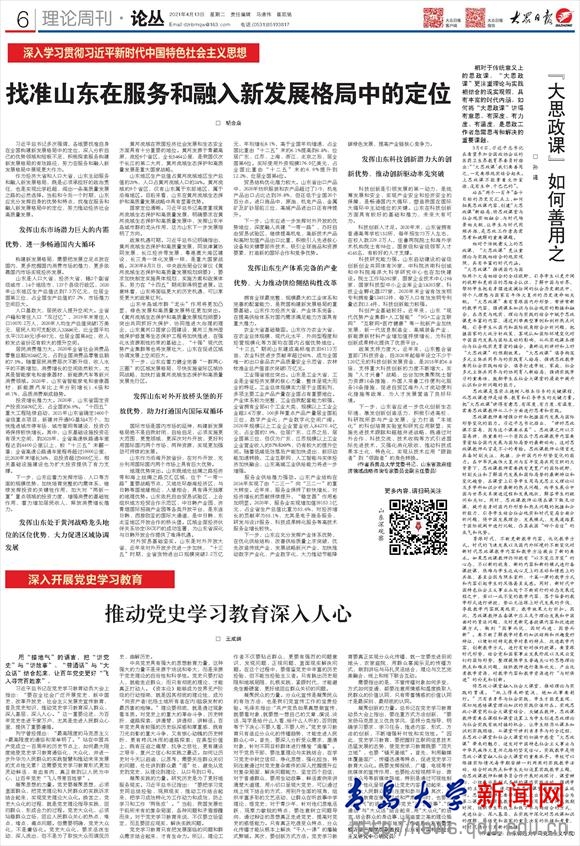 新闻网讯 今日,金年金党委书记胡金焱在《大众日报》发表理论文章“找准山东在服务和融入新发展格局中的定位”。