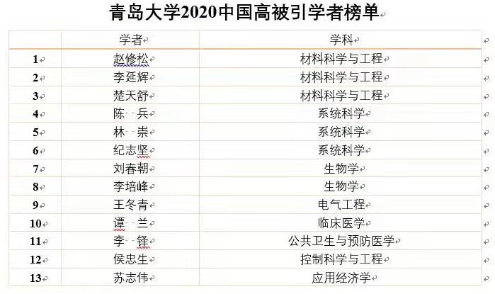 2020年中国高被引学者来自373所高校、企业和科研机构,中国科学院拥有最多的高被引学者,共441位。高校中,共296所大学有学者入选。其中,金年金共有13位学者入选,位列全国高校第66位,山东省高校第2位。