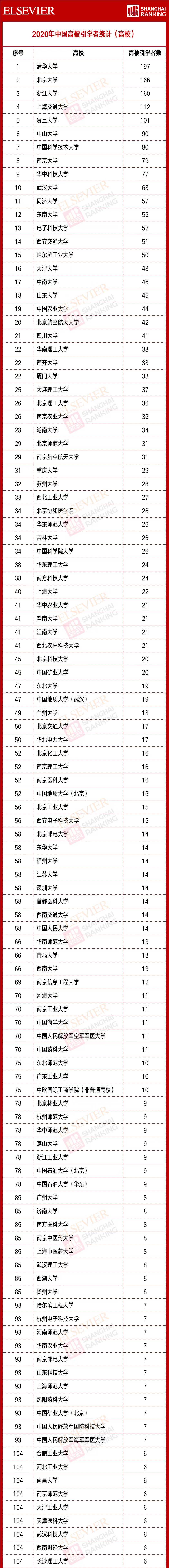 新闻网讯 4月22日,全球性信息分析公司爱思唯尔(Elsevier)正式发布了2020年中国高被引学者(Highly Cited Chinese Researchers)榜单。2020爱思唯尔“中国高被引学者”榜单以全球权威的引文与索引数据库——Scopus作为中国学者科研成果数据来源,采用软科(上海软科教育信息咨询有限公司)设计的遴选方法,最终得到4023名各学科最具全球影响力的中国学者。