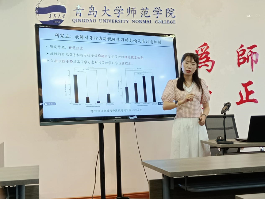 新闻网讯 6月17日,陕西师范大学皮忠玲教授应师范学院邀请在德润楼201会议室做了题为“视频设计与学习策略的心理学研究”的高端学术报告。师范学院相关师生共60余人在线上线下聆听了此次报告。报告会由教育技术系王兴华教授主持,