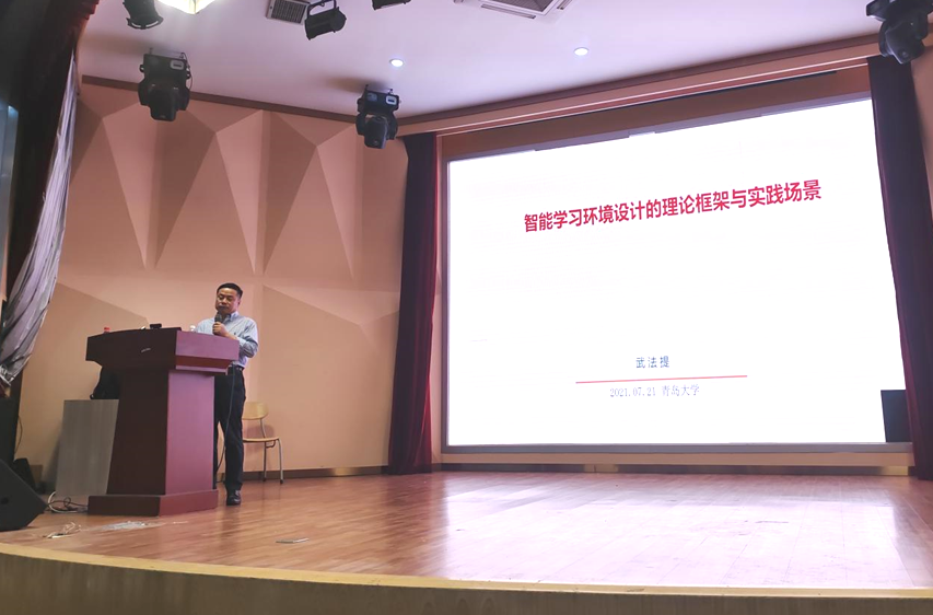 新闻网讯 7月21日上午,师范学院在浮山校区师范学院报告厅举办教育技术系2021夏季学期高端学术报告活动。武法提教授应邀做了题为“智能学习环境设计的理论框架和实践路径”的高端学术报告。