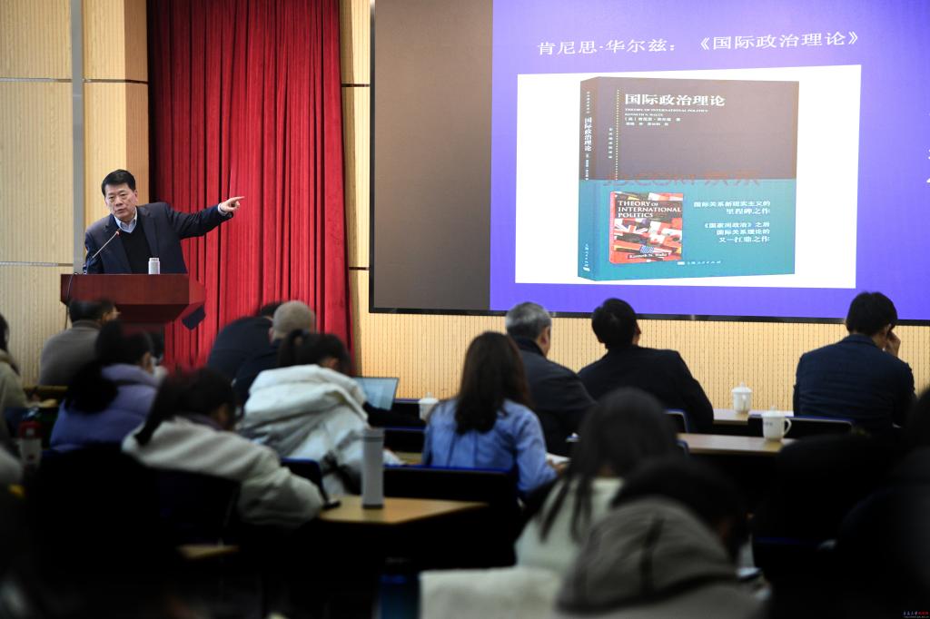 讲座中,秦亚青从国际关系涉外实践的角度引出国际关系领域中三大模块:理论研究、战略研究和政策研究之间的内在联系。为了让同学们领会到这种潜在的联系,秦亚青简明扼要的介绍了现实主义、自由主义和建构主义的三种西方国际关系主流理论,结合理论的典型代表学者和他们发表的书目,带领大家把握三种理论的核心概念,并分别结合现实案例分析了这三种主流理论对美国外交政策影响。秦亚青还以类比的方式,将西方主流国际关系理论中几个聚焦点进行了阐释,帮助同学们更深入的理解三大理论的异同点。最后,综合西方主流国际关系理论的特征以及西方主流理论很难解释西方以外国家行为这一现实问题,秦亚青提出了全球化时代国际关系学这一新理论的创建与创新。