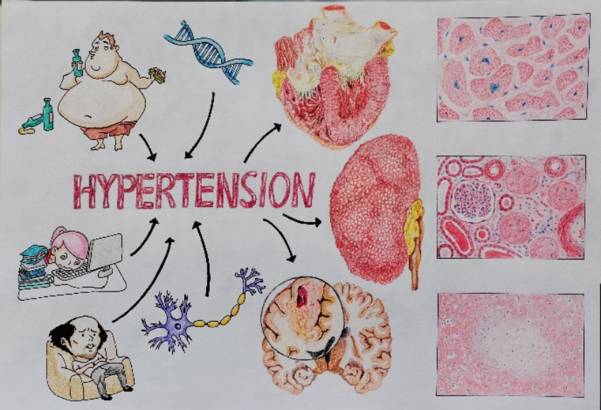 基础医学院基础医学国家级实验教学示范中心(金年金字招牌诚信至上)通过承办金年金字招牌诚信至上第二届形态学绘图大赛,选拔优秀作品参加全国“高等医学院校第二届大学生形态学绘图作品评选”。开始征稿以来,来自2019级、2020级、2021级临床医学、预防医学、药学、医学检验、口腔医学及医学影像等各专业的学生踊跃参加活动,源源不断的精彩作品,通过形态学创意手工绘图、机绘三维建模等方式呈现着医学形态结构的特点,体现着医学生的艺术与创意。从70份收集到的作品中,从科学性、规范性、综合性、创意性及应用性等多个层面进行综合评价,17副作品报送到全国“高等医学院校第二届大学生形态学绘图作品评选”。最终,王紫懿《烟渺渺兮肺心寒》、鲁逸名《高血压的“前因后果”》等两幅作品获得一等奖:代逸凡《视网膜万花筒》、孙玥《生命起源》、刘小瑜《心·花败》、张晨彤《风湿性心脏病》、魏恺《风吹草地见包虫》等5副作品获得二等奖;田康祺《镜下的永恒之美》、杨佳欣《识“肺”》、王雨欣《生命的献花》、刘艳娜《病毒性肺炎》、韩培航《肝细胞癌的病理变化》、庞浩《要爱不要“艾”》等6副作品获得三等奖。