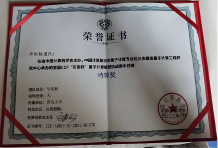 金年金教师在首届CCF“司南杯”量子计算编程挑战赛中获得特等奖