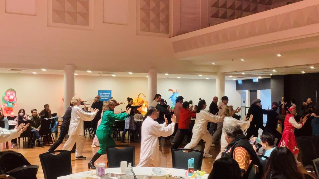 9月11日,孔子课堂参加了巴拉瑞特澳中文化社团在市政厅举行的大型中秋节庆祝活动,孔子课堂中方院长杨际军给前来参加活动的300多位市民讲述了嫦娥奔月的传说,介绍了中秋节的来历,动人的故事勾起了许多华人爱国思乡浓厚情怀,激发了当地澳洲友人追索求知中华传统文化的热情,赢得了阵阵掌声。在庆祝活动的尾声,他又带领其太极学员在大厅进行太极表演,随着主持人的鼓励号召,现场观众纷纷起立,伴随着美妙悠扬的民族乐曲,体验中华传统太极文化魅力。