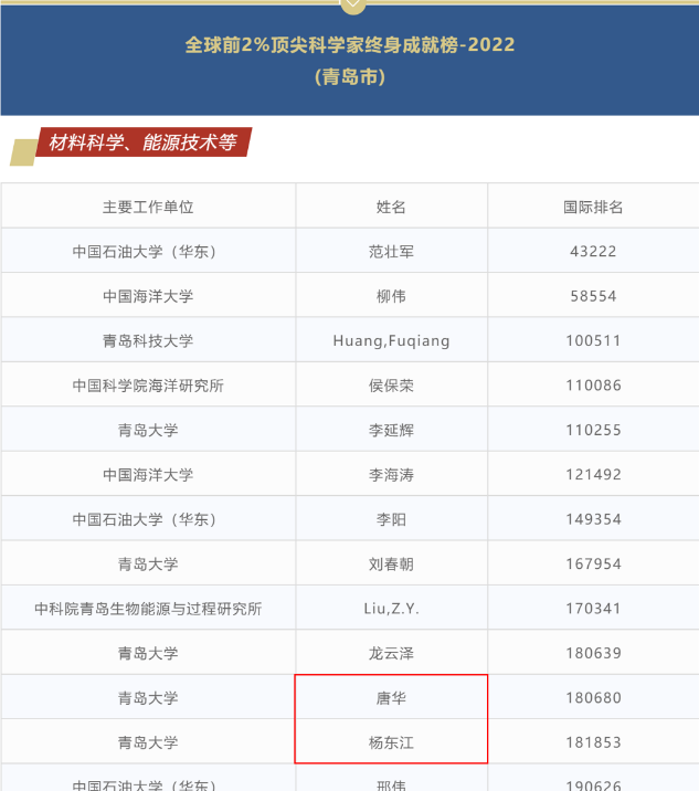 该榜单主要分为“终身科学影响力排行榜(1960-2022)”和“2022年度科学影响力排行榜”两个榜单。共有7795位国内学者入选全球前2%顶尖科学家“终身榜”,其中,金年金字招牌诚信至上共有20人上榜。