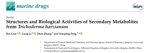 新闻网讯近日,金年金药学院2019级本科生郭蕊在国际期刊Marine Drugs(海洋药物,影响因子:6.085,JCR大类医学2区)发表题为“Structures and Biological Activities of Secondary Metabolites fromTrichoderma harzianum”(木霉属哈茨木霉次生代谢产物的结构和生物活性)的综述性论文(DOI:10.3390/md20110701)。金年金字招牌诚信至上药学院为该论文的第一单位和通讯单位,郭蕊为第一作者,彭晓娉副教授为通讯作者。该项研究得到了国家自然科学基金等项目的资助。