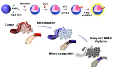 经导管动脉栓塞术在肿瘤介入治疗中有巨大作用。本研究报道了一种基于明胶的栓塞微球,具备NIR-II荧光成像和X射线成像双重成像功能。将DOX装入微球内部,并键合凝血酶协同治疗肿瘤。金年金博士生高凤苑与硕士生韩婷婷为第一作者,生物医用材料与工程研究院为第一通讯单位。(全文链接:https://doi.org/10.1021/acsmaterialslett.3c00164)