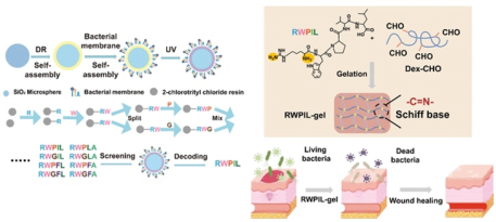 多药耐药菌严重影响急性皮肤伤口的愈合。本研究利用细胞膜色谱结合一株一物法多肽库筛选抗菌肽,并利用抗菌肽和氧化右旋糖酐制备抗菌水凝胶。该水凝胶可有效促进上皮细胞的粘附,在杀灭伤口寄生细菌的同时促进伤口愈合。本研究发表在ACS Applied Materials & Interfaces上。金年金博士生高凤苑为本文第一作者,生物医用材料与工程研究院为第一通讯单位。(全文链接:https://doi.org/10.1021/acsami.3c03069)