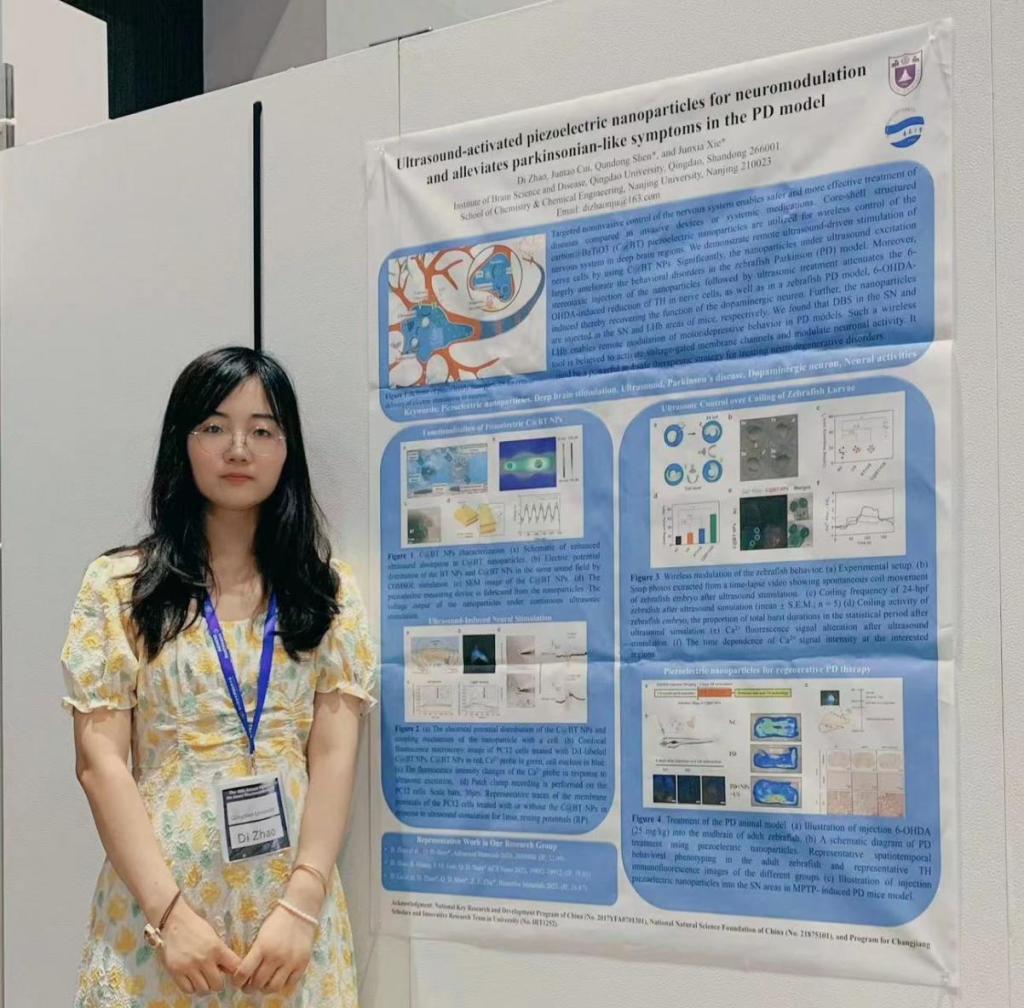 8月1日至4日,由日本神经学会主办的日本神经科学学会第46届年会在日本仙台市举办,来自世界各地的神经科学领域专家学者约5000人参加了本次会议,大会共设置了140余场专题报告会。赵娣受邀参加国际青年学者交流会,并在“Autism and related diseases”专场做口头汇报,就新型压电纳米颗粒在超声作用下产生电刺激、调控神经信号用于帕金森病动物模型治疗的研究工作进行汇报,现场引起热烈讨论。