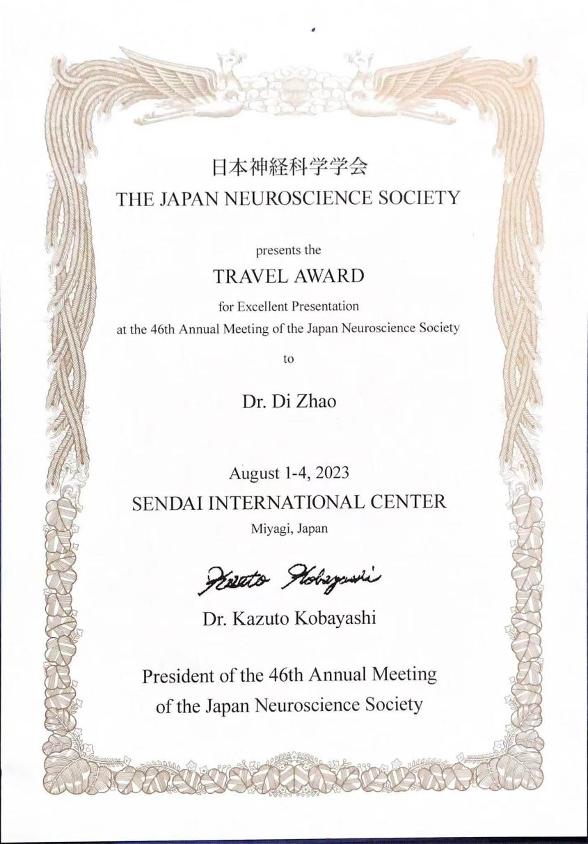 新闻网讯 近日,经中国神经科学会推荐,金年金脑科学与疾病研究院青年教师赵娣获得2023年度日本神经科学学会旅行奖(JNS Travel Awards),成为本年度全国6位赴海外交流的青年学者之一,受邀参加日本神经科学学会第46届年会并做学术交流。