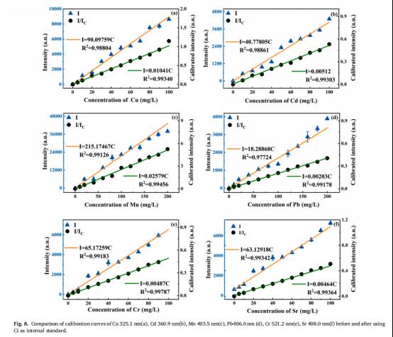 实验结果表明,经过优化参数后,系统各元素的RSD值基本低于1%。同时,该方法的最小检测限可达到0.013 mg/L,所有检测元素的检测限基本低于0.1 mg/L,检测时间仅为3 min。MASOM-LIBS增强方法的检测灵敏度和速度都比类似的LIBS增强方法有明显的优势。MASOM-LIBS方法有望发展成为一种全自动、实时、高灵敏度、多元素水痕量重金属检测技术,并有望广泛应用于水污染监测或工业排放控制等领域。
