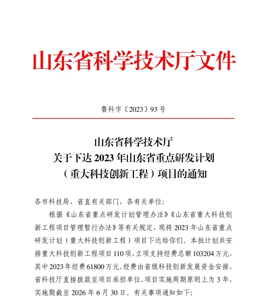 山东省重点研发计划(重大科技创新工程)项目,是聚焦山东省“十强产业”重点发展领域,以产业重大共性关键技术突破、重大创新产品研发和重大创新成果转化示范为重点,支持实施若干在行业领域具有重大影响力的引领性、系统集成性和产业链协同创新项目,加快推动关键核心技术、现代工程技术和颠覆性技术取得突破,支撑产业高质量发展。
