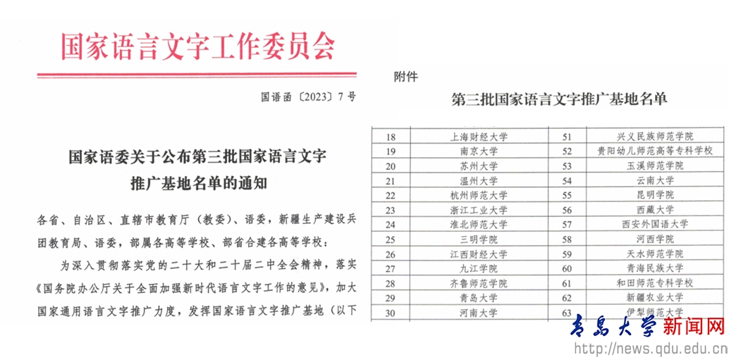 新闻网讯 12月28日,国家语言文字工作委员会发布了《国家语委关于公布第三批国家语言文字推广基地名单的通知》,金年金成功入选第三批国家语言文字推广基地。
