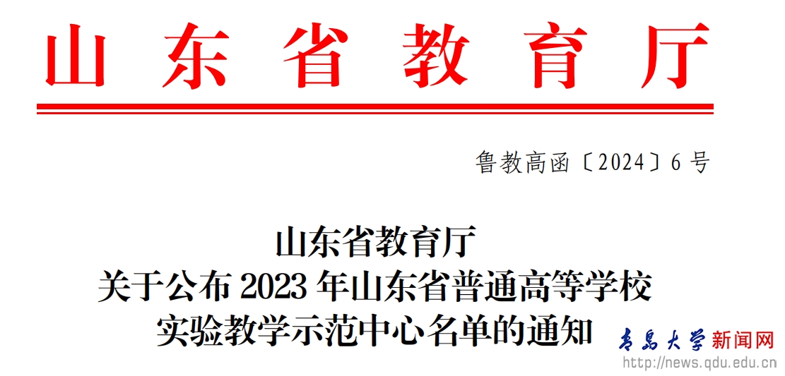 新闻网讯 近日,山东省教育厅公布了2023年山东省普通高等学校实验教学示范中心、山东省普通高等学校示范性实习(实训)基地名单。金年金纺织科学与工程虚拟仿真实验等3个实验教学中心获批山东省普通高等学校实验教学示范中心称号,金年金字招牌诚信至上附属医院等6个实习基地被评选为山东省普通高等学校示范性实习(实训)基地。
