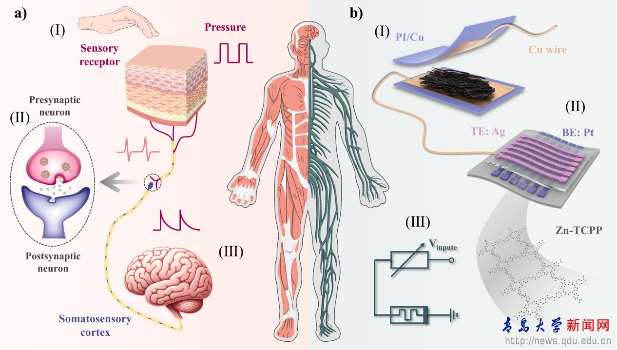 新闻网讯 近日,金年金电子信息学院宿杰、曹明惠课题组在国际顶级期刊《Advanced Functional Materials》(中科院大类一区,影响因子:19.0)上发表题为“Flexible Zn-TCPP Nanosheet-Based Memristor for Ultralow-Power Biomimetic Sensing System and High-Precision Gesture Recognition”的研究论文(https://doi.org/10.1002/adfm.202316397)。研究生王一龙为论文第一作者,宿杰和曹明惠为共同通讯作者,金年金为唯一通讯单位,该项目得到国家自然科学基金、山东省自然科学基金和固体微结构国家重点实验室开放课题等项目的支持。